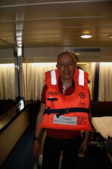 On remonte à 19h au salon «Emeraude» pour un briefing de la journée du lendemain, puis à 19h30, consignes de sécurité suivies d'un exercice avec enfilage de gilets de sauvetage: comme dirait le grand Karl, c'est moche mais ça peut sauver des vies.