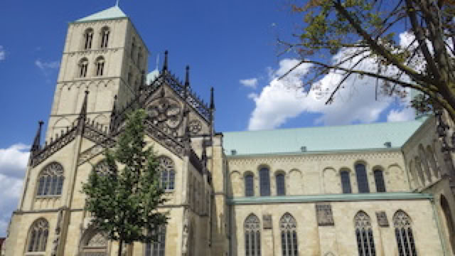 Dimanche, nous prenons la voiture pour aller visiter Münster : le château et son parc, le «Dom» (Cathédrale), les arcades commerçantes, la «Promenade» jusqu’à l’Aasee (où je bois 1/2 l d’Apfelschorle ...)