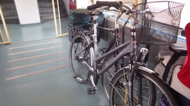 Arrivée à Emden vers 13h, rapide collation et nous embarquons les vélos dans le train, voie 3 (un peu difficile à trouver ...), départ à 14h. Nous avons de la chance car nous sommes les premiers à rentrer des vélos, mais le compartiment va rapidement se remplir !