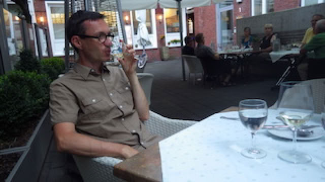 Finalement, nous passons rapidement notre chemin sans nous arrêter et nous poursuivons vers la ville d’à côté : Norden. C’est plus tranquille, mais rien d’extraordinaire. Nous prenons néanmoins un goûter en terrasse d’un salon de thé. Je commence à essayer d’apprendre à dire «Apfelschorle» (j’ai un peu de mal et j’ai tendance à demande un «apfelschtorle» !) : pour mémoire, c’est du jus de pomme avec de l’eau gazeuse : c’est simple et rafraichissant et très populaire en Allemagne.