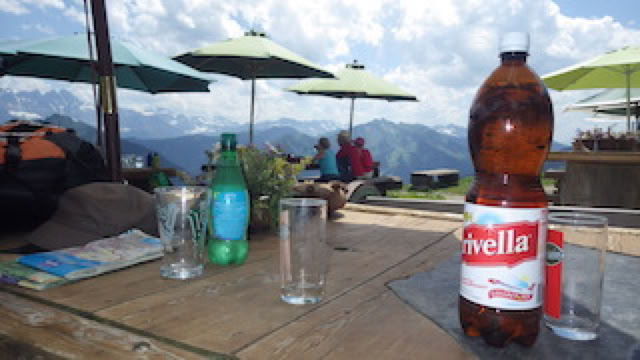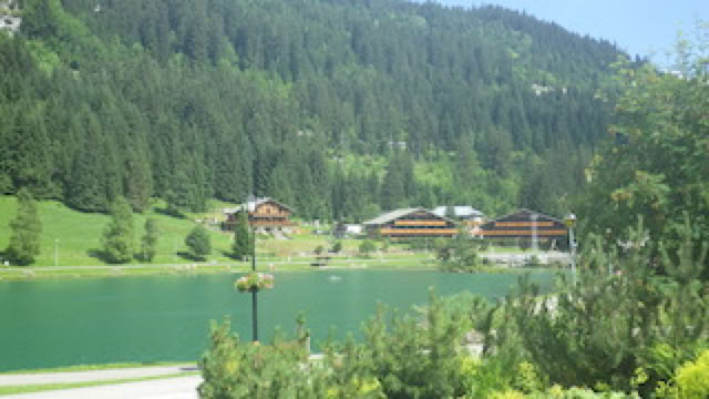 On prend un verre en terrasse en attendant la navette qui nous ramènera à Châtel centre : nous sommes les seuls passagers et le chauffeur va à fond. La voix synthétique a à peine le temps d’annoncer les arrêts successifs. Malheureusement, il faudra remonter du centre vers Petit Châtel à pied ...