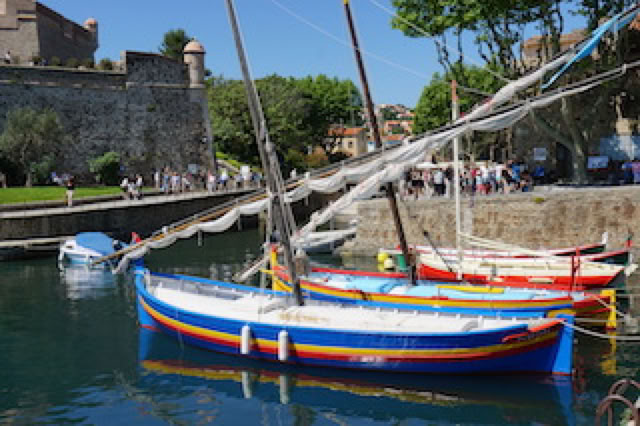 Retour à Collioure pour finir la journée : nous mangerons aux «Voiles», en plein air, avec vue imprenable sur le port et la mer ... et une bonne bouteille de Collioure blanc.
