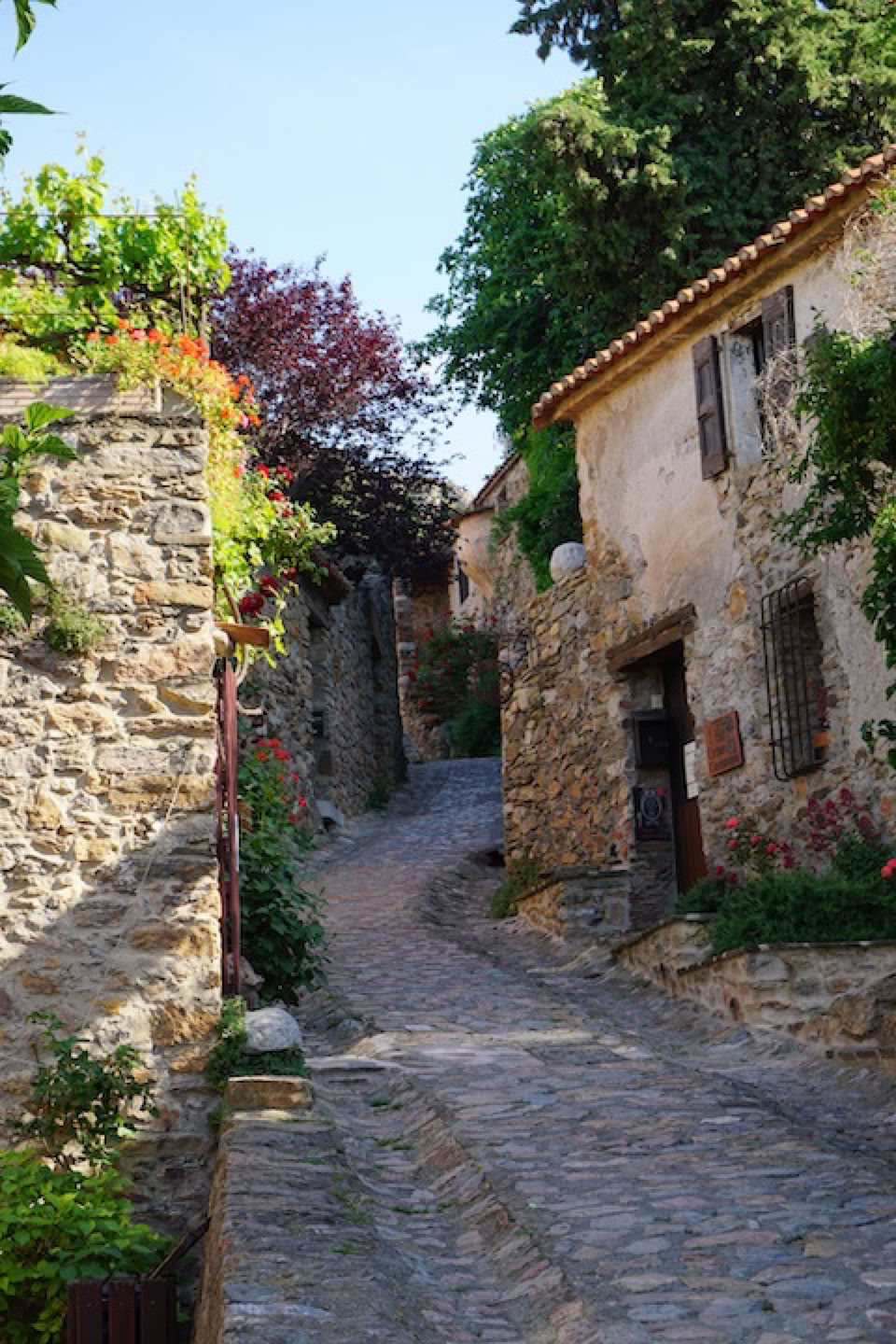 Redescente, plus rapide, à Villefranche, retour vers 17h. Avant de retourner à notre hôtel à Elne, nous décidons de passer par le plus beau village de France (ou prétendu tel), Castelnou. Effectivement, de loin, c’est un magnifique petit village médiéval ... et de près aussi. Presque trop ‘conservé’ d’ailleurs, avec évidemment son cortège de boutiques d’artistes et d’artisans. Bref, c’est très joli mais on en a vite fait le tour et nous repartons donc vers Elne pour notre dernière soirée.