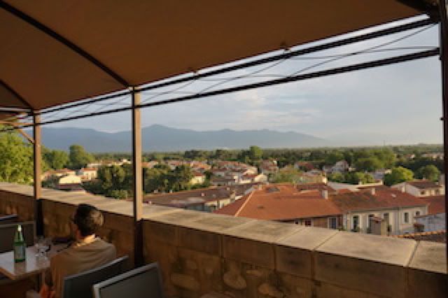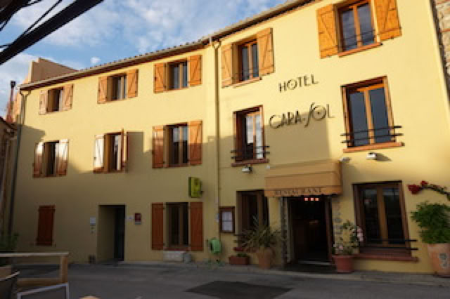 Pierre prend le volant, direction notre destination du WE, la petite ville d’Elne, au Sud de Perpignan. Notre hôtel, le Carasol, est logé à l’entrée de la vieille ville. L’endroit est calme, en hauteur, avec le Mont Canigou (dans les nuages ce soir là 😀 en face. C’est donc en terrasse, dans la douceur du soir, que nous dégustons le menu aux saveurs locales : simple mais très bon. La simple salade de chêvre de l’entrée n’a absolument rien à voir avec ce qu’on trouve dans les brasseries ! On est tellement fatigué de la journée (la petite rando, le soleil ...) qu’il faut se forcer un peu pour la promenade digestive dans la vieille ville !