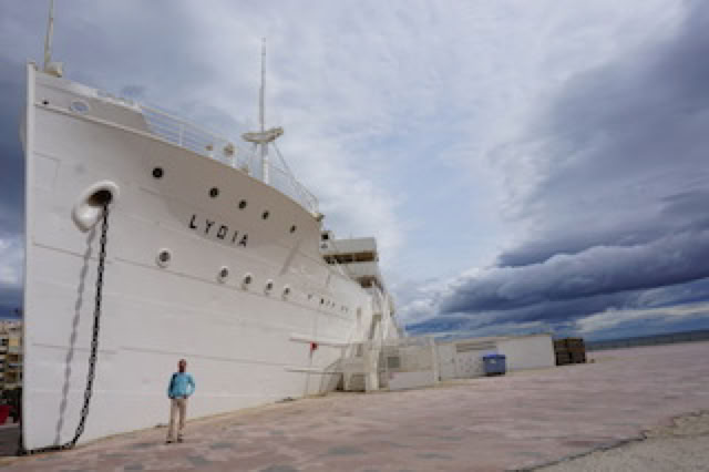 Nous reprenons la route, très belle, qui serpente en corniche le long de la côte vermeille. On hésite à s’arrêter à Port Vendres, puis à Banyuls, mais finalement, c’est au bout, à Cerbère, que nous nous posons. C’est un endroit un peu étrange, qui a eu son heure de gloire quand il était le terminus obligé, routier et ferroviaire, avant de passer la douane espagnole, et qu’il fallait, pour les trains, changer d’écartement. Les traces marquantes de ce passé sont la grande gare, le monument aux transbordeuses d’oranges, et surtout son «Hôtel du Rayon Vert», sorte de paquebot en béton des années 30 ... maintenant plutôt «vaisseau fantôme».