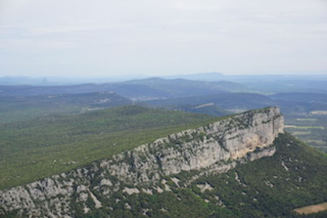 Et c’est donc sans préparation (pas d’eau, simples baskets) et sous un beau soleil que nous empruntons le chemin ... très fréquenté. Ce n’est pas une grosse randonnée, sauf les derniers 500m un peu plus escarpés, et après 1h nous arrivons au sommet avec une très jolie vue, jusqu’au Mont Ventoux et les Cévennes. La descente est finalement plus pénible car la soif et les chaussures inadaptées se font sentir. Et en point final, à 200m de l’arrivée, la semelle de ma chaussure gauche prend simplement son indépendance (la paire finira à la poubelle ...).