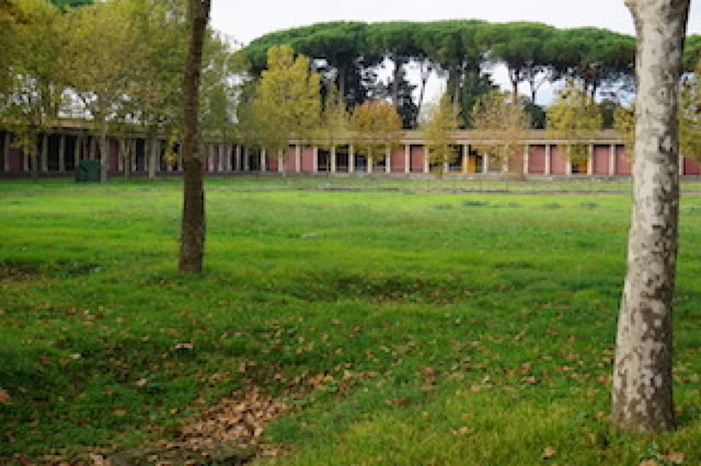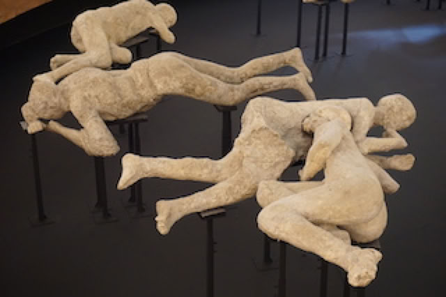 Certaines peintures aux murs des villa sont d'une étonnante fraîcheur, on imagine bien la vie dans ces grandes villa … un peu moins dans les toutes petites maisons. L'exposition, sous une curieuse pyramide de bois, des corps surpris par la catastrophe est troublante et résonne avec les dramatiques évènements de la veille à Paris. J'apprécie l'ambiance du grand palestre, sorte d'immense cloître où l'on imagine sans mal des athlètes en train de s'entraîner. Vous aimez les gladiateurs ? Happy