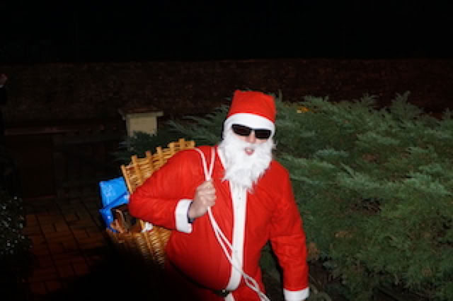 Tout le monde descend bien habillé, les filles sont superbes et le petit chapeau pointu de Mathilde apporte sa petite touche d'humour. Apéritif très généreusement accompagné de Champagne … et le Père-Noël s'annonce déjà. La distribution des cadeaux est rapide. La petite Gaëlane, 5 ans, se pose quelques questions … "C'est le vrai Père-Noël ?". Tout le monde est content, Pierre avec sa flute verte, Gaëlane avec son Dr Maboul-Minion et un demi-clavier (!), etc. Josiane gâte ses enfants et nous offre une grosse "participation" à notre nouveau canapé.