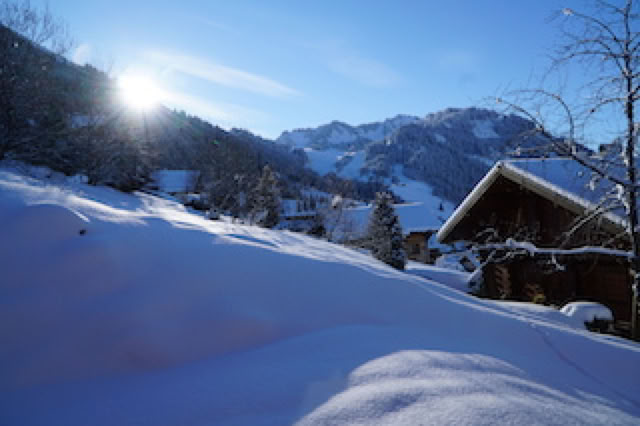 Vers 16h, le ciel se dégage, l'occasion d'aller faire un tour à pied au village, acheter du pain, quelques magazines, prendre la météo. Bonne nouvelle : il va encore neiger dans la nuit, mais il fera beau dans la matinée. L'idéal pour le ski.