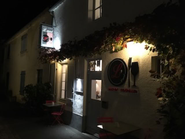 Vient l’angoisse du restaurant, un lundi soir, encore plus désert que le dimanche soir. Heureusement, l’hôtel-restaurant « Fleur de Sel » nous paraît très bien et nous réservons nos deux couverts. Mais c’est à un 1 km du centre et c’est à pied et dans le noir que nous y allons … Belle salle, avec de la place, très calme, service soigné et attentif : j’aime. Et surtout, je peux avoir des huîtres au menu : je ne serai pas reparti de Noirmoutier sans manger quelques huîtres. A noter un rince-doigts « magique » : une sorte de gros comprimé d’aspirine effervescent, sur lequel on verse de l’eau chaude … et qui se transforme en … lingette humide. Amusant. Sinon, très bonne cuisine, en juste quantité et bien présentée, le tout accompagné de verres de vin de Gascogne. Bref, il nous fallait bien ça pour terminer le séjour en beauté :-). Et Pierre me prend en photo dans mon magnifique pull Lacoste (rolling joke …). Reste le retour à pied après manger : finalement pas désagréable pour profiter une dernière fois de Noirmoutier.
