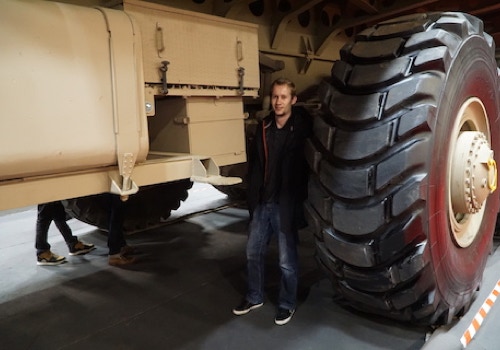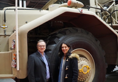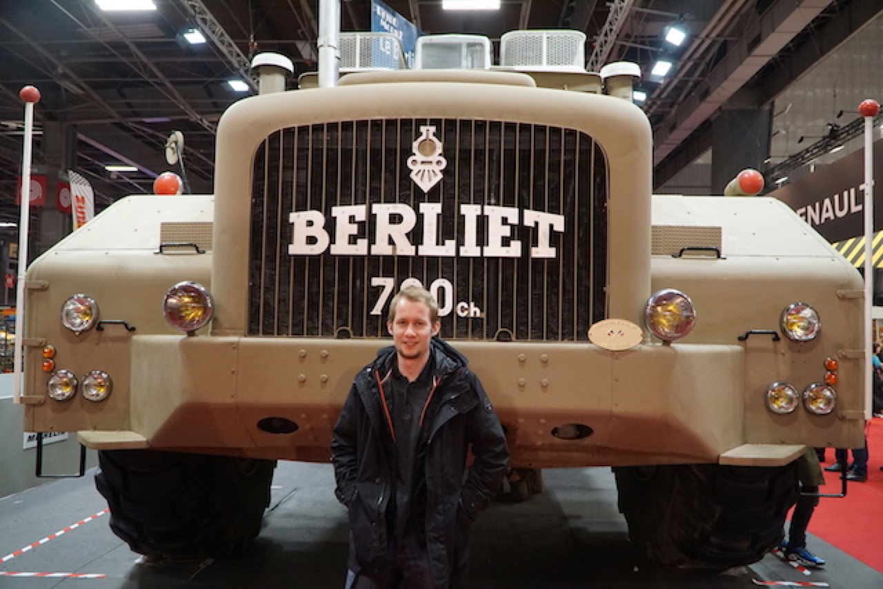 Je reçois un SMS de Pascal Hamon, un autre collègue (mon ancien chef à vrai dire, celui qui m’a recruté à la SG à l’origine), qui me dit qu’il est là. Sans surprise pour un véritable passionné et restaurateur de Citroën, c’est sur le stand des 100 ans de Citroën que nous nous retrouvons. Il est avec sa compagne Valérie que j’avais déjà rencontrée à la soirée théâtre d’Axelle Besson. Pascal me détaille en particulier la 5HP rouge sur le stand, puisqu’il participera en juillet à la manifestation des 100 ans de Citroën avec une 5HP … jaune. Je prends Pascal et Valérie en photo au pied du gigantesque Berliet qui est exposé.