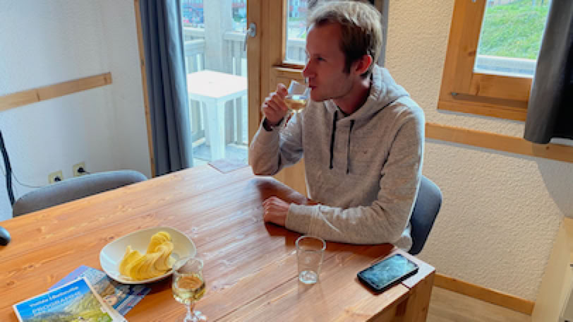 Cela ne nous empêche pas de nous faire un premier apéritif au vin de Savoie et un bon dîner pour nous remettre de ces émotions !