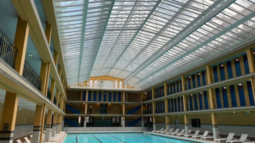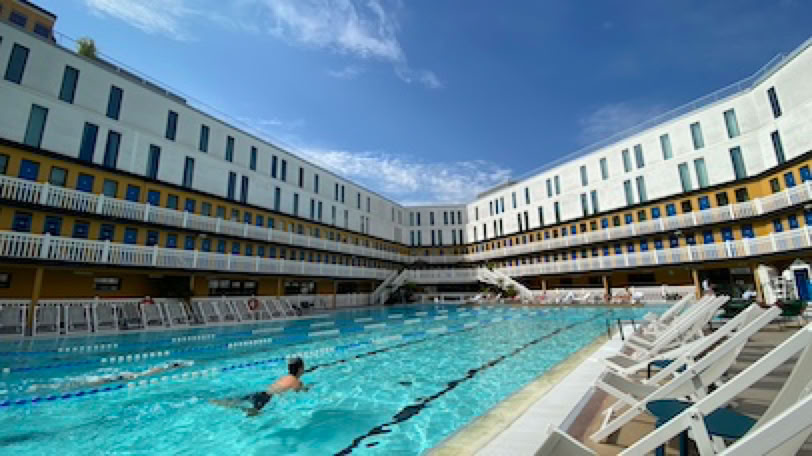 Nous avons eu Pierre et moi un cadeau original pour nos anniversaires en début d’année: un séjour en journée à la Piscine Molitor, dans le XVIIe, qui est maintenant un hôtel de luxe autour de la célèbre piscine.