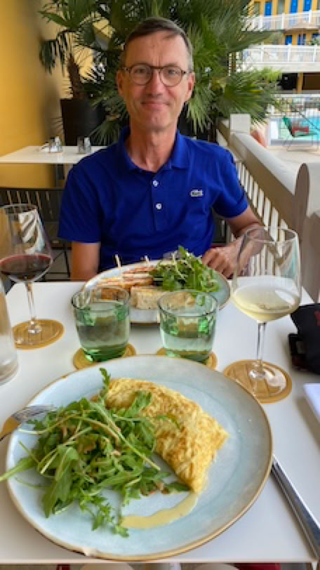 Quelques fidèles sont en train de nager tranquillement. Evidemment, je m’insère dans une ligne d’eau pour faire quelques longueurs. Repos au bord de l’eau. Un garçons de bain nous offre une citronnade rafraîchissante. Puis nous retournons nous changer avant de descendre déjeuner au « 1929 » (repas léger … les prix font un peu peur !)