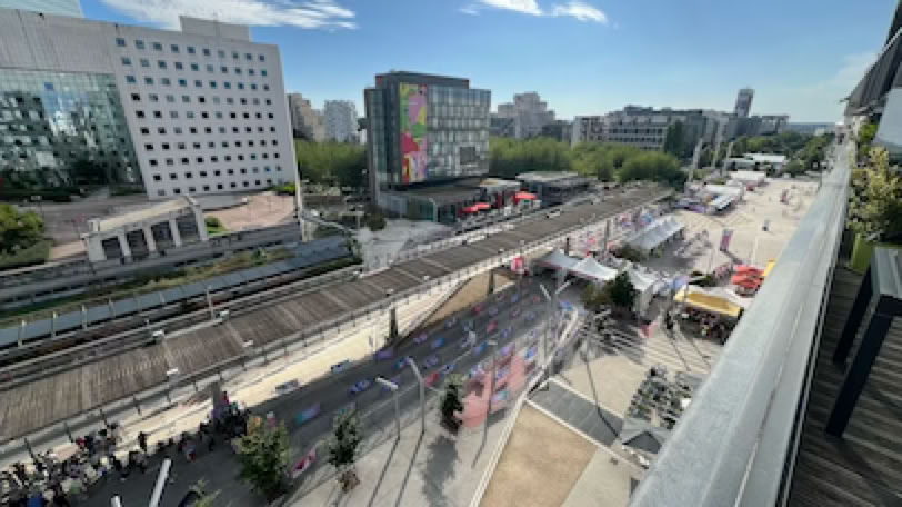 Lever 7:00, petit-déjeuner, remballage, chargement express dans la Mini et nous quittons notre petite maison des Abbatilles avant 8:30. WAZE nous indique 5:34 de route, ce qui parait anormalement peu, mais en fait, toute la route sera très fluide, y compris l’arrivée et le contournement de Bordeaux. L’autoroute est chargée mais globalement fluide. L’arrivée sur Paris plus fluide que jamais et c’est à 14:34 que nous arrivons à La Défense. Maintenant, il nous faut jouer au jeu de piste pour pouvoir rentrer dans notre parking puisque nous habitons dans le périmètre du site Olympique de La Défense-Arena! D’abord récupérer un badge spécial pour la voiture au bureau d’accréditations devant l’Arena. Pierre récupère un immense pass vert à ventouse sur le pare-brise. Puis nous devons faire un grand tour pour arriver rue des Sorins, en passant devant plusieurs contrôles de police grâce à notre pass. Enfin, nous arrivons devant l’entrée de la rue. Une grand portail grillagé bloque l’entrée de la rue : nous devons descendre de la voiture, ouvrir les portes, le coffre, pendant que quelqu’un passe un miroir sous la Mini. Nous devons vider nos poches et passer sous un portail de détection. Enfin nous remontons dans la voiture, le portail s’ouvre et nous pouvons enfin accéder au parking de l’Arena, sous la piscine Olympique, pour enfin arriver dans le parking de notre immeuble. Il aura fallu 20’ pour y arriver … mais cela aurait pu être pire. Bref, à 15h, nous sommes chez nous : nickel !