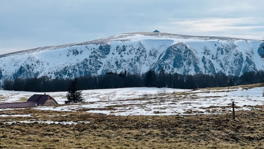 Nous suivons un chemin balisé qui va nous emmener jusqu’au sommet du Hohneck. Montée plutôt tranquille, quelques passages dans la neige dans la forêt, puis montée finale au sommet du Hohneck. Il y a beaucoup moins de vent que lors de notre dernier passage au Hohneck, où nous avions du rebrousser chemin. Nous redescendons par un autre chemin et, arrivés au col après deux heures de marche, nous nous posons devant le bar pour boire un verre (ou un thé vert …).