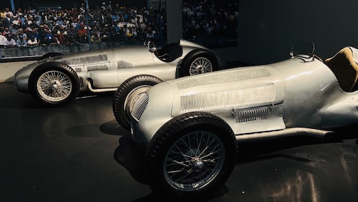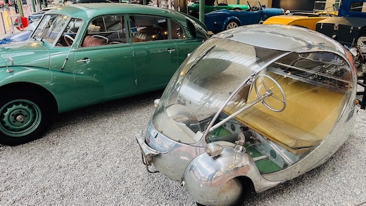 C’est sous un temps pluvieux que nous arrivons à Mulhouse et que nous nous garons devant le Musée National de l’Automobile - Collection Schlumpf. Ce n’est pas la première fois que je le visite, la dernière fois, c’était avec les enfants. Mais c’est toujours un étonnement de parcourir ces immenses allées bordées de lampadaires belle-époque et surtout par des centaines d’automobiles exceptionnelles posées sur du gravier blanc. Néanmoins, le musée se renouvelle petit à petit et une zone est en travaux pour une meilleure mise en valeur des uniques Bugatti Royales. Avant de quitter le musée, nous prenons évidemment un café au bar du Musée, et reprenons la voiture pour rejoindre la Cité du Train.