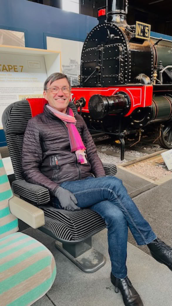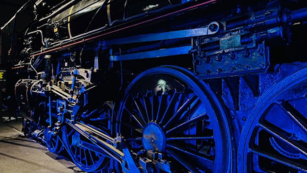La collection de matériels ferroviaires est magnifiquement présentée dans la halle principale. On se sent minuscule à côté des magnifiques locomotives à vapeur, on aimerait voyager dans les luxueux wagons de la Compagnie Internationale des Wagons-Lits … et nous nous asseyons plus modestement sur les banquettes en bois d’un wagon de troisième classe et d’une banquette 1ère classe de train Corail.