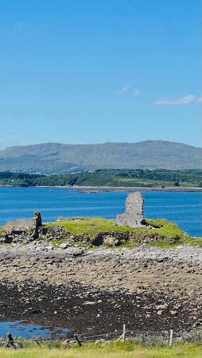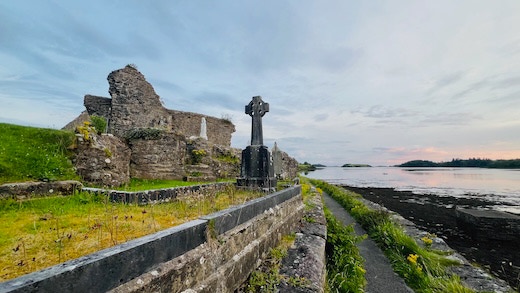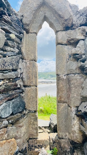 Après cette agréable marche aller/retour sur la plage, la mer est suffisamment descendue pour accéder à pieds secs à l’ile d’en face, Inishkeel. Malheureusement, pas de possibilité de promenades sur l’ile à l’exception de l’accès à deux anciennes églises en ruine, entourées de cimetières à moitiés recouverts par la végétation. Néanmoins, le site est très beau avec ces vieilles pierres chargée d’histoire irlandaise qui domine la belle baie de Narin.
