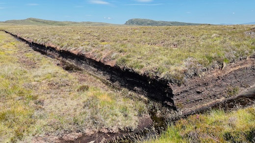 Sortie de Carrick (une première montée …) puis une petite route qui suit une vallée, avec très peu d’habitations et quelques moutons. Le paysages est grandiose (il va falloir s’habituer …). Des quantités de grands sac plastiques dans certaines prairies nous intriguent : c’est notre premier contact avec les tourbières, très caractéristiques du paysage et qui sont pour certaines encore exploitées, comme c’est le cas ici.