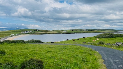 Retour à un bon continental breakfast ce matin, après l’expérience de l’Irish breakfast de la veille. Longue étape prévue aujourd’hui, en direction d’Annagry et en passant par l’île d’Arranmore. Le temps est magnifique.