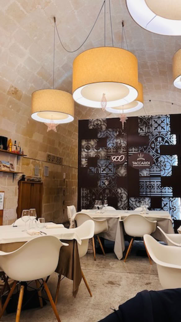Pour notre dernier dîner à Polignano, nous choisissons un bon restaurant (le « Crù »). Nous somme un peu surpris car il n’y a pas de table à l’intérieur et il fait un peu frais. Finalement, nous mangerons bien à l’extérieur, dans une ruelle, sous des lampions blanc. C’est joli. Un très bon vin blanc local, une cuisine raffinée, un joli cadre … Bref, un bon moment pour ce dernier diner de notre voyage. Dernière visite dans le dédale des rues de Polignano, une dernière église que nous n’avions pas encore visité et retour à l’hôtel « Echi di Puglia ».