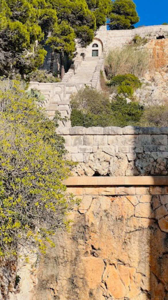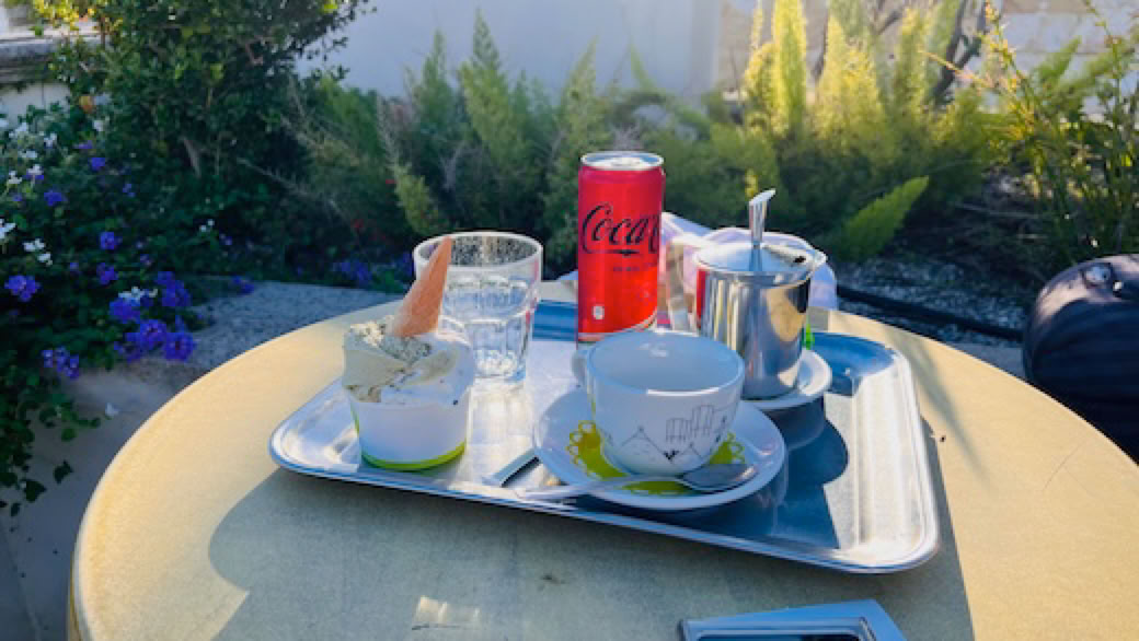 Nous redescendons les grands escaliers, regardons deux jeunes en train de s’entrainer à la varappe à l’entrée des grottes marines, rejoignons le port en passant par des passerelles en bois vermoulu et trouvons, en haut d’une petite rue, un café pour boire un verre … et manger une bonne glace.