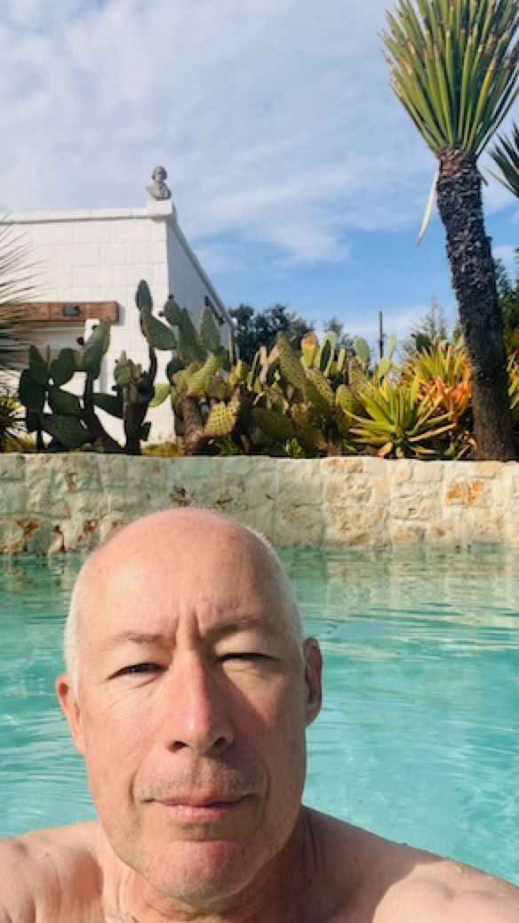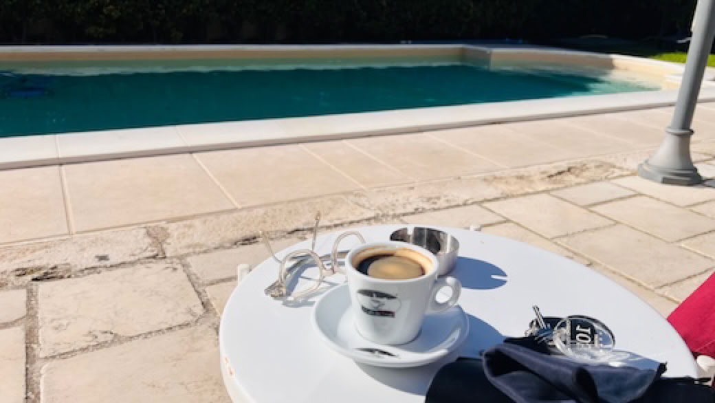 Nous commençons la journée par un solide petit-déjeuner, en extérieur, sur une grande table commune (mais nous sommes seuls !). Ensuite, je fais quelques brasses dans la piscine de la résidence, sous le regard interrogatif du buste de Beethoven … Enfin, nous partons nous promener dans le centre, à 10’ à pied de notre hôtel « Echi di Puglia ».