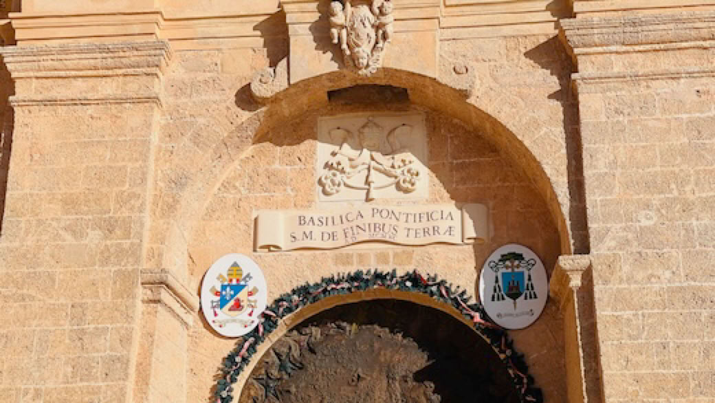 Sur le coup, la ville balnéaire nous parait déserte et nous nous promenons sur la digue. Quelques belles maison sur le front de mer. Puis nous nous dirigeons vers le belvédère à l’Est de la ville. Nous nous retrouvons au pied d’un double escalier monumental de part et d’autre d’une cascade asséchée. Nous nous essoufflons à gravir toutes ces marches et nous débouchons sur une vaste esplanade de pierre, avec le grand phare blanc, une vue panoramique qui va de la mer Adriatique à l’Est jusqu’à la Méditerranée à l’Ouest, et l’imposant Sanctuaire de Sainte Marie de la fin de la Terre (Santuario di Santa Maria de Finibus Terrae). Le sanctuaire a été consacré par Jean-Paul II et visité par Benoit XVI, excusez du peu. L’endroit est magnifique, baigné par un beau soleil d’automne.
