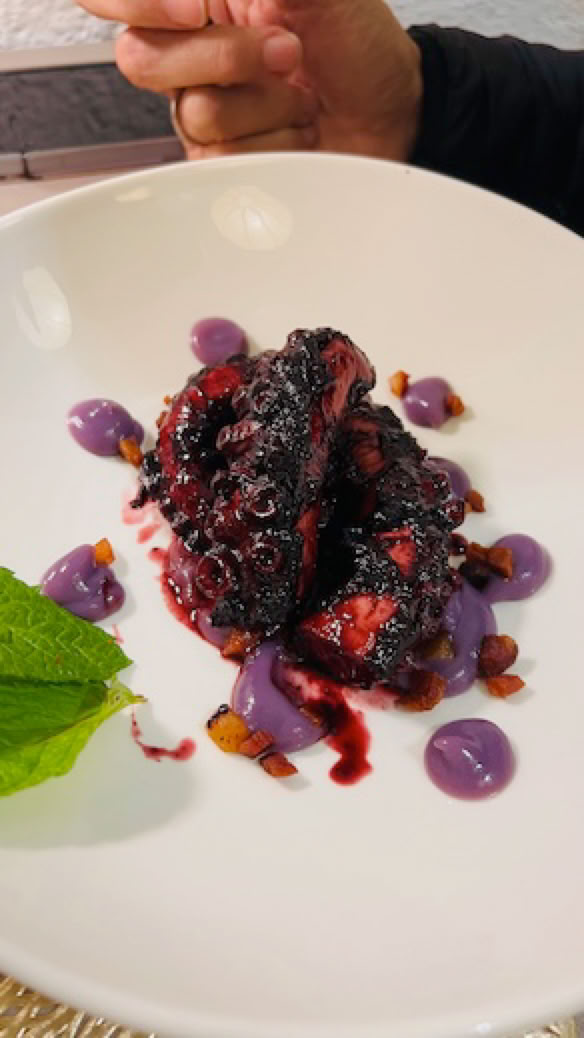 Pour le dîner, Pierre a repéré un restaurant sur Trip Advisor, sa bible de voyage, … mais finalement, le restaurant n’est pas très engageant, vide, dans une rue avec beaucoup de circulation … Peut-être qu’on y mange bien, mais nous continuons vers le centre historique et nous nous installons en terrasse d’un restaurant plus sympathique. On y mange bien, Pierre apprécie le poulpe, toujours accompagné d’un bon vin blanc des Pouilles. Le cadre est agréable et la rue piétonne est animée : c’est la soirée d’Halloween et l’on voit passer tous les enfants déguisés, en chasse de bonbons. Seul le dessert, un sorbet au raisin, nous déçoit un peu.