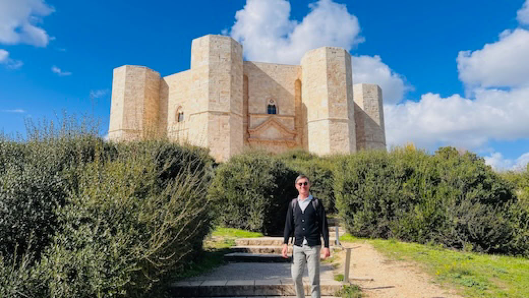 Aujourd’hui, nous prenons la Jeep pour aller au château de Castel del Monte, à environ 70km au Nord de Matera. Isolé sur une hauteur, il découvre sa forme particulière au sortir de la forêt qui l’entoure. Tout le château est construit selon un plan octogonal régulier, qui se reproduit aussi pour chacune des 8 tours à chaque angle ou dans la cour intérieure. Cette forme lui donne une silhouette très caractéristique qui se détache sous le beau ciel bleu du jour. Après la visite de l’intérieur du chateau et un café en terrasse, nous entreprenons une petite randonnée tout autour de la butte. Il fait vraiment beau et les couleurs d’automne des vergers et des vignes ressortent sous le soleil.